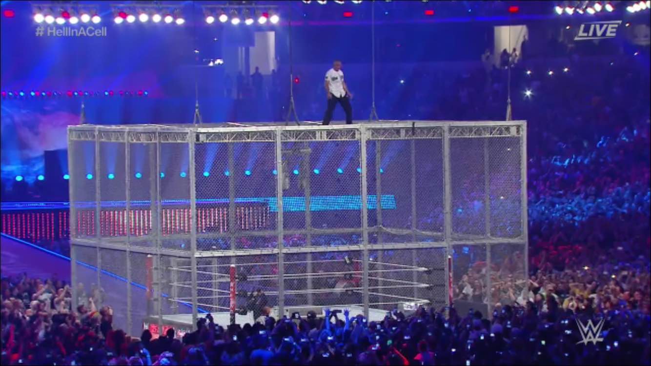 Shane O’ Mac jumps off Hell in the Cell… and misses.