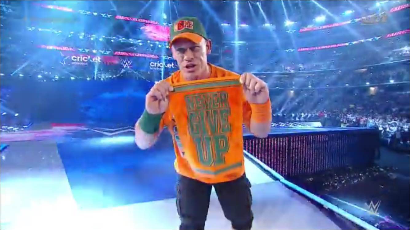 What’s WrestleMania without John Cena? Cena hits the ring to help Rock take out the Wyatt Family. This return must have been conformed at last minute as John Cena didn’t even have an entrance video.