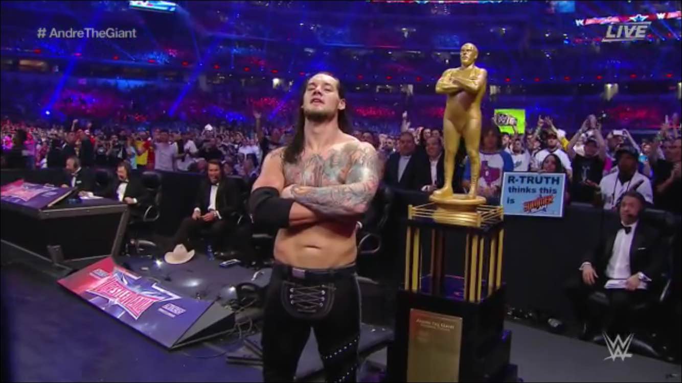 Corbin recovered from his lost to Austin Aires from Friday’s NXT: Takeover and won the Andre The Giant Memorial Battle Royal. This would be the first time a NXT superstar would earn the honor. After winning, a NXT chant broke out in the stadium.