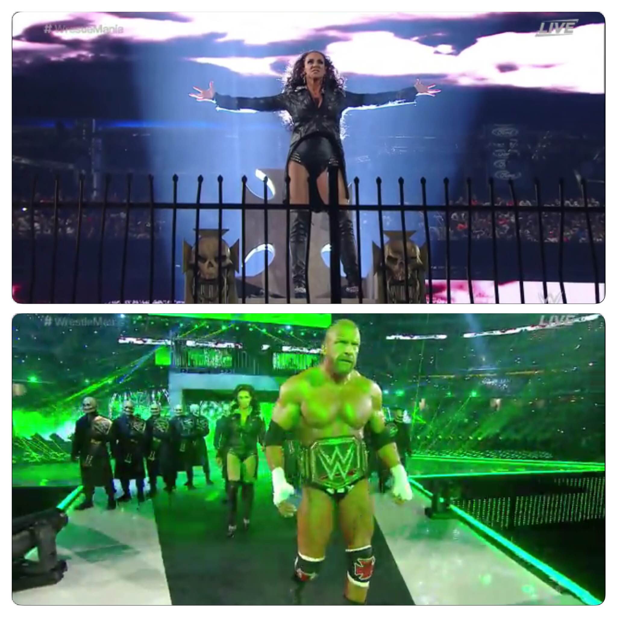 To put it short, The Authority really took this “control over others” quite literally with their entrance. Stephanie McMahon would appear on top of a post-apocalyptic podium, complete with minions holding WWE World Heavyweight championships below, declaring “WE OWN YOU!” to the crowd. Next, Triple H enters WrestleMania 32 in 2016 as the WWE World Heavyweight Champion (Yes, you read that right). These two are the only ones that believe in their own hype.