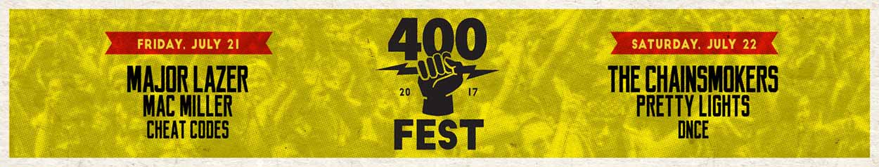 The 400 Fest takes place over two nights on Friday, July 21st and Saturday, July 22nd at the Indianapolis Motor Freeway. Gates to the event open at 5pm with performances kicking off at 7pm.