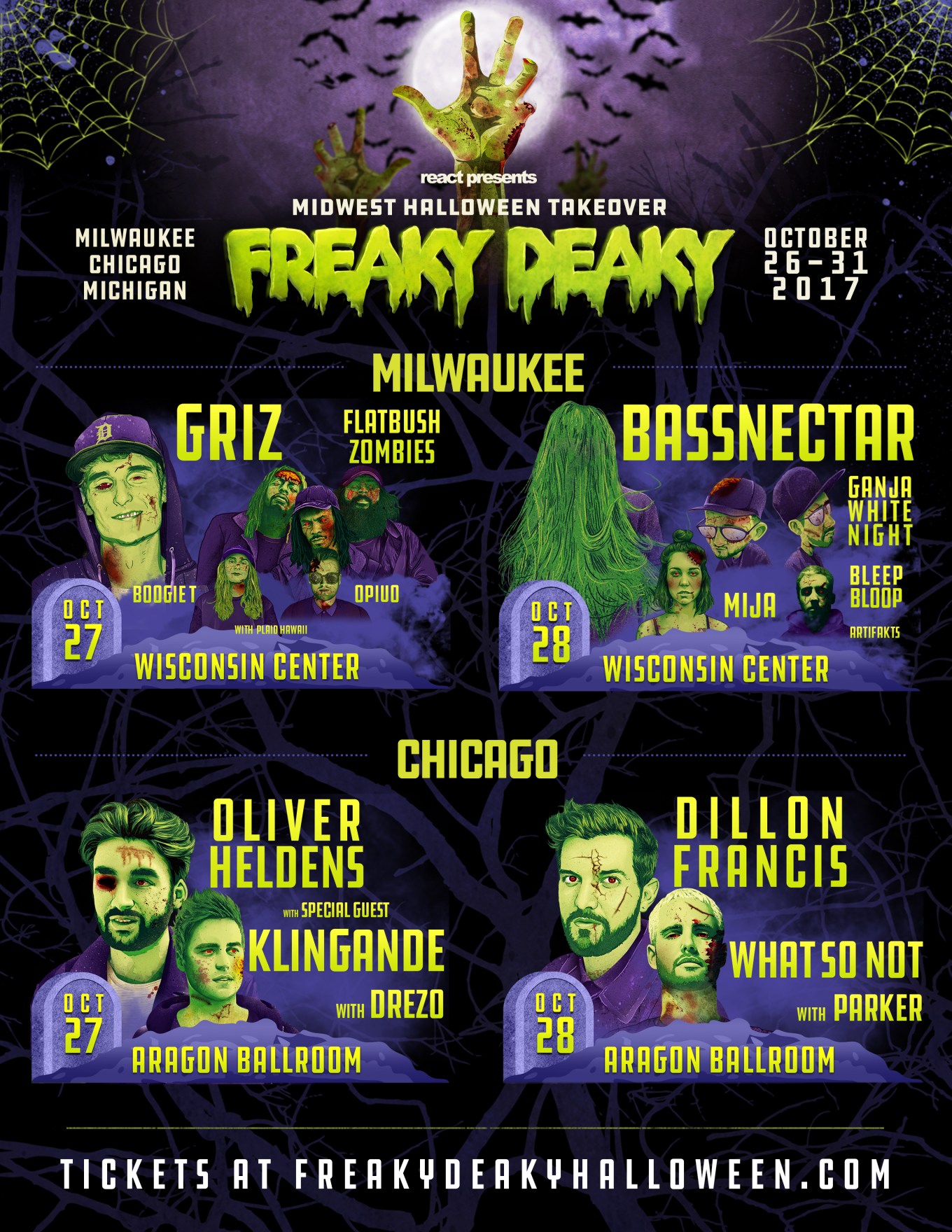 Freaky Deaky will run from October 27th-31st in Milwaukee, Chicago, and Michigan.